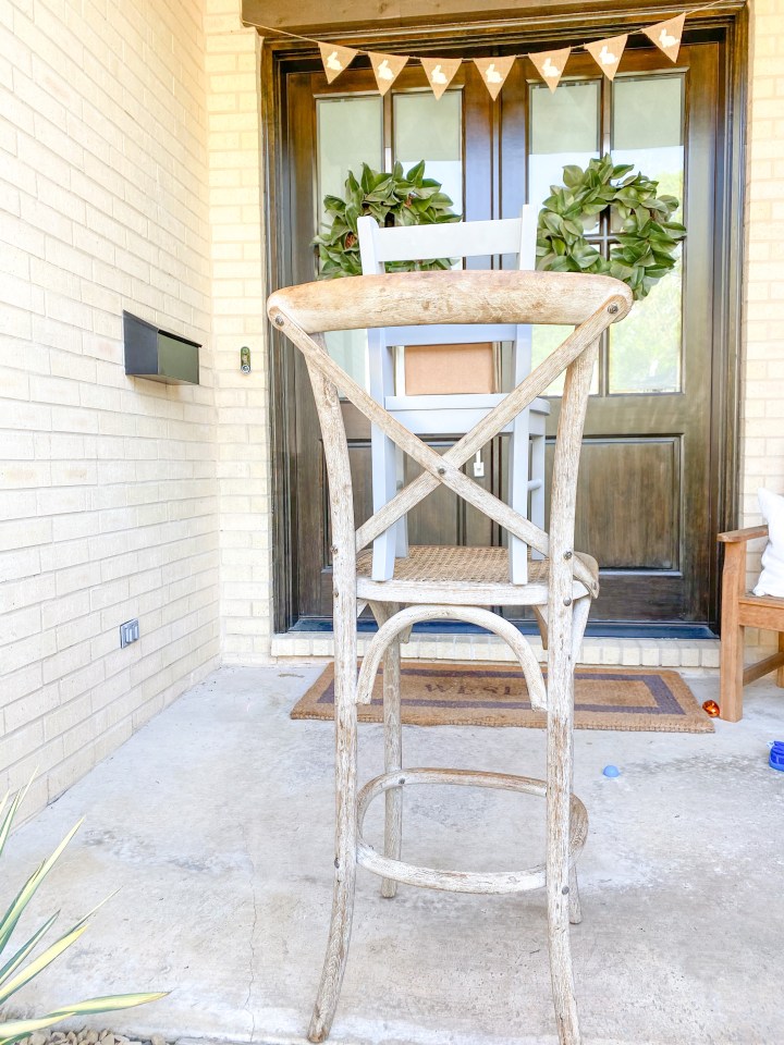 First things first, decide where you want to take your photo. We were supposed to have rainy weather this morning, so I fully expected to have to choose an indoor spot. But, the rain came later than expected, and we got some good sunlight in the morning. So, we pivoted to take our pic by the front door. That being said, wherever you choose, you want LOTS of natural light, and a clear, crisp, uncluttered background, if possible.