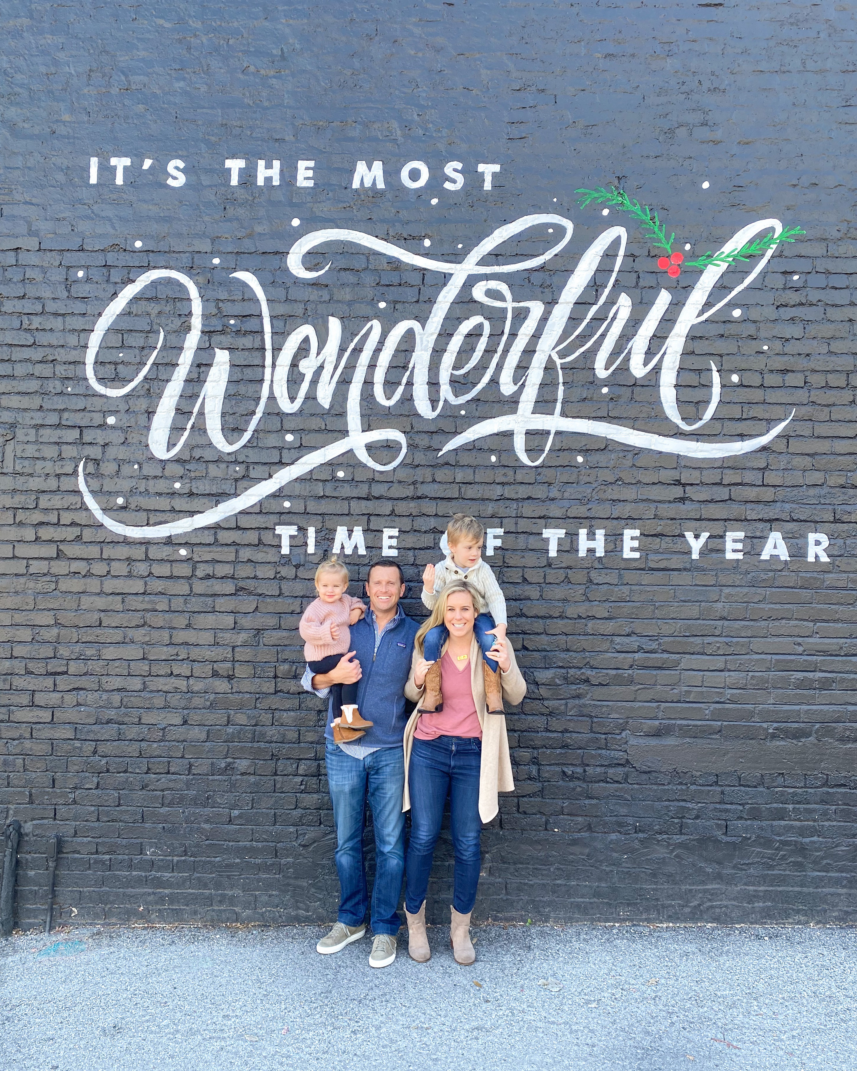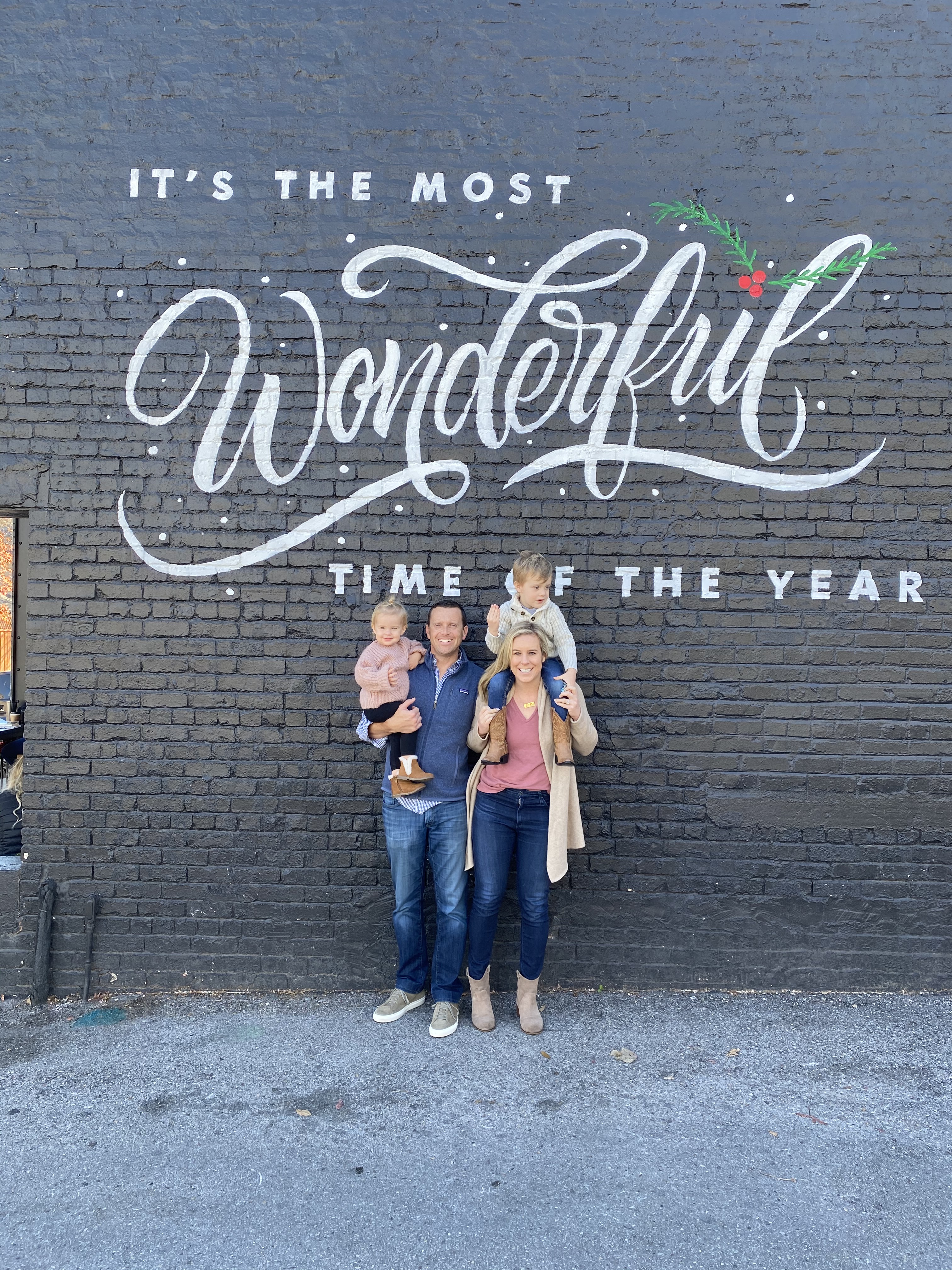 I also occasionally use FaceTune to “patch” something like a stain on the kids’ shirts, or a spill on the ground that looks messy. (I did this for our Christmas card this year – we were standing in front of a big old mural, and the gravel on the ground had a bunch of dirt spots and spills – I just made them all one color so the image would be cleaner and so that people could focus on the cute saying on the wall and the people in the picture, instead of the dirt on the ground).